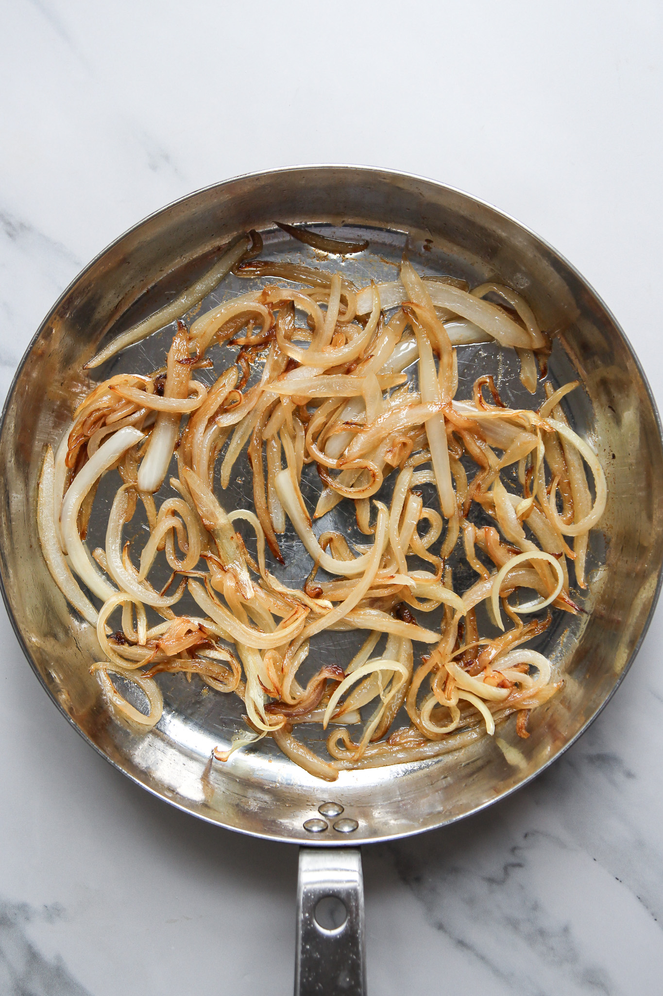 True caramelized onions are a bit of a labour of love, but I promise you, they’re worth it! To truly caramelize onions, about an hour of cooking time is required. The onions get sautéed over low heat for an extended period of time until they turn jammy, sweet, and a deep caramel colour. An hour may sound like a lot of time to commit to an onion, but the good news is the onions only need to be stirred periodically, so you can complete other tasks while they cook.