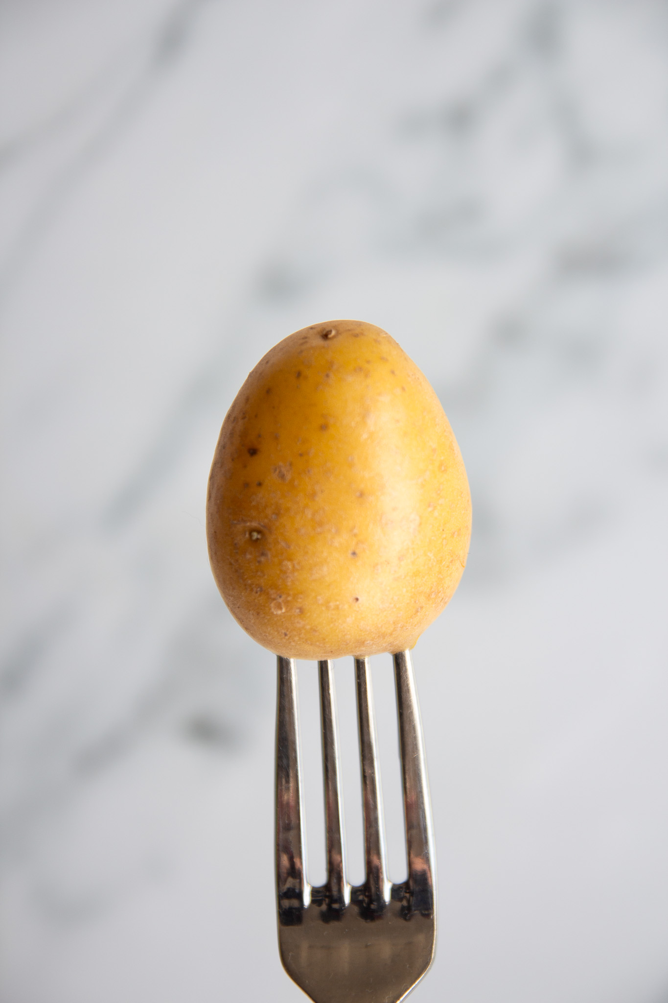 • Place a large pot on the stove and bring to a boil. Once the water is boiling, add a splash of white vinegar and the potatoes. Boil for 10 minutes, or until fork tender.