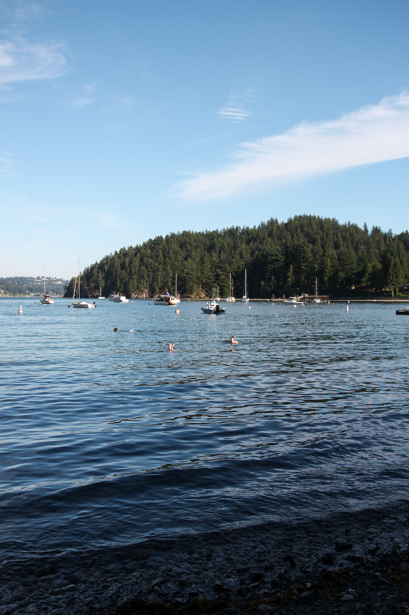 After spending a couple of hours in the hot sun out on the water, we were ready to cool down with a swim in the ocean. Pebbles Beach was recommended to us by the staff at Bowen Island Sea Kayaks. The beach was a quick walk from the centre of Snug Cove. All of the roads on the island were lined with huge brambles of blackberries, which were a perfect little snack on our walk to the beach.