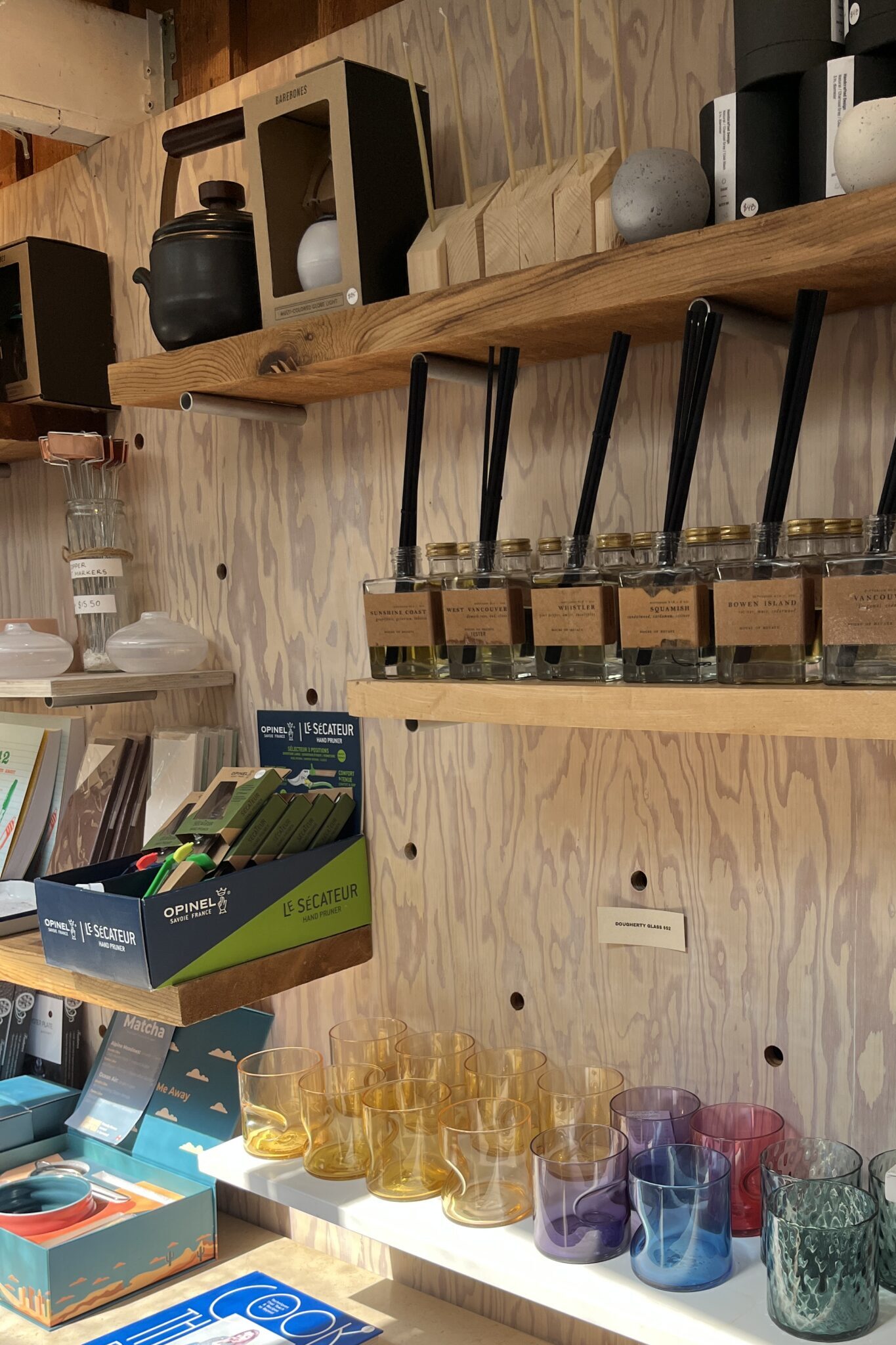 On the Bowen Island pier you’ll find Narwhal on Bowen and Branch on Bowen, two shops that are conveniently connected. In addition to these two spots, there are sea kayak rentals and Tell Your Friends Café. We popped into Narwhal on Bowen to admire their curated selection of home goods, textiles, and books. I loved the selection of glassware they had in the store. It would be an excellent spot to buy a hostess gift.