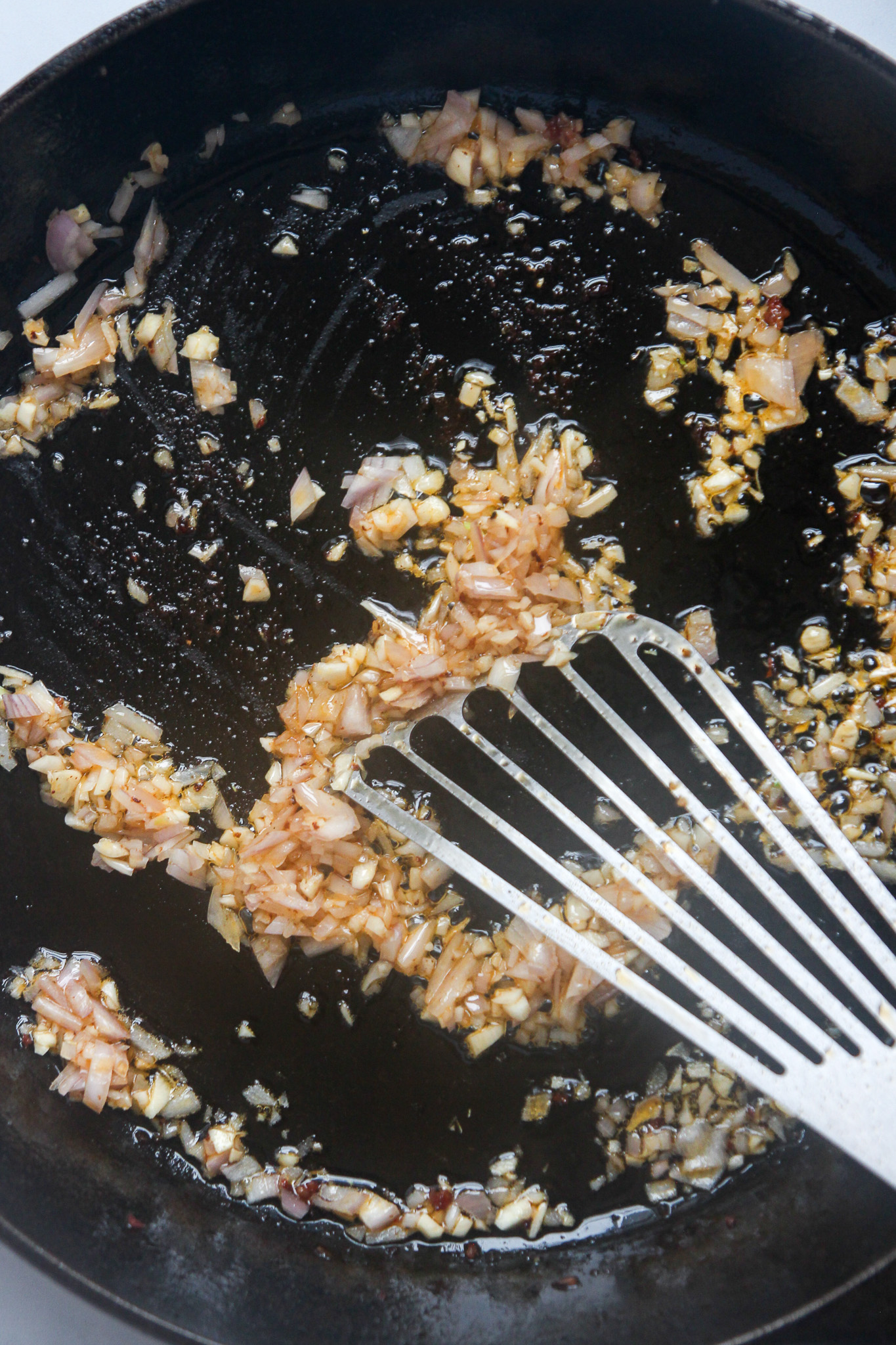 Step Three—Fry the Garlic, Shallot, and Chili Flakes