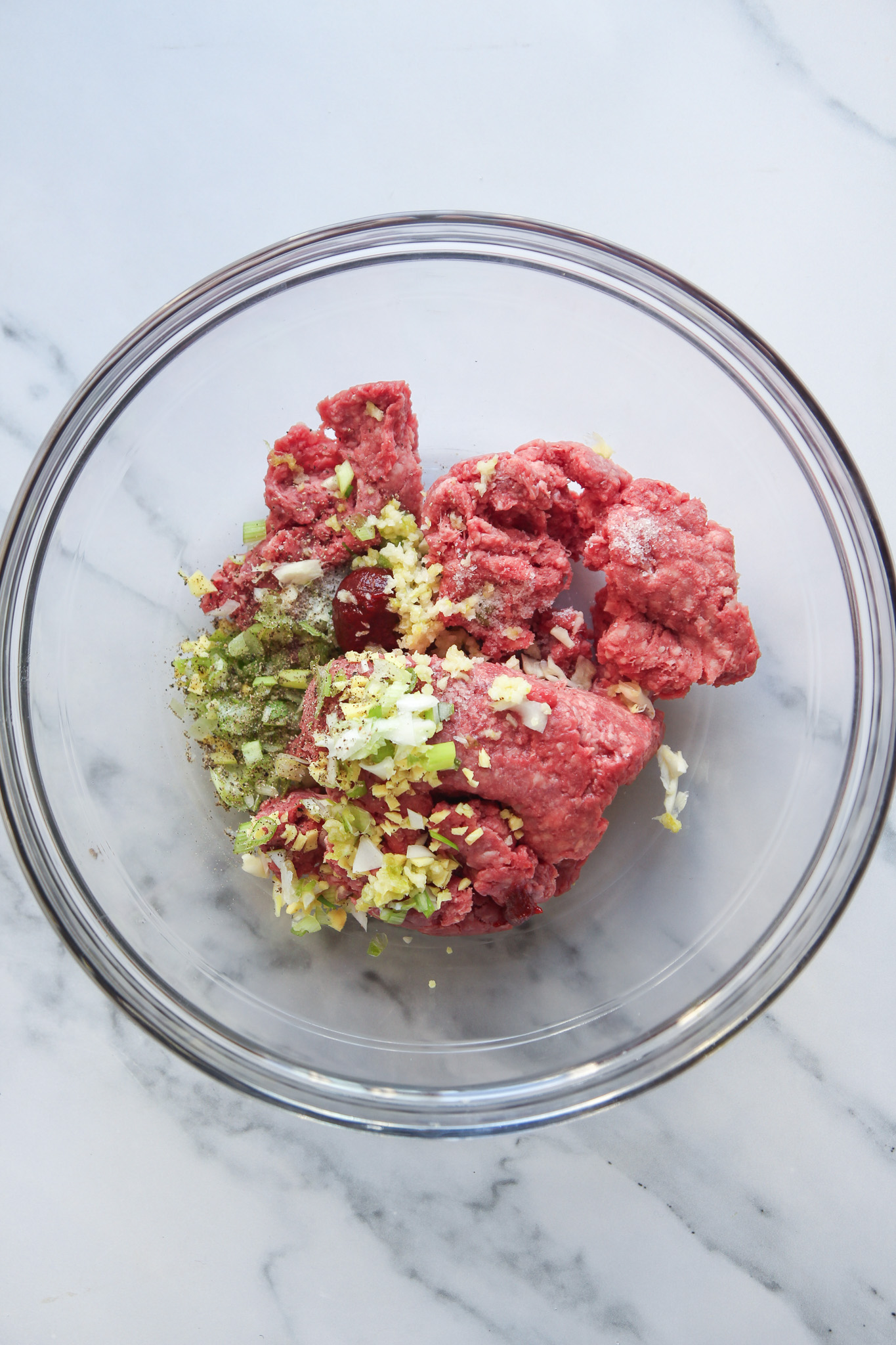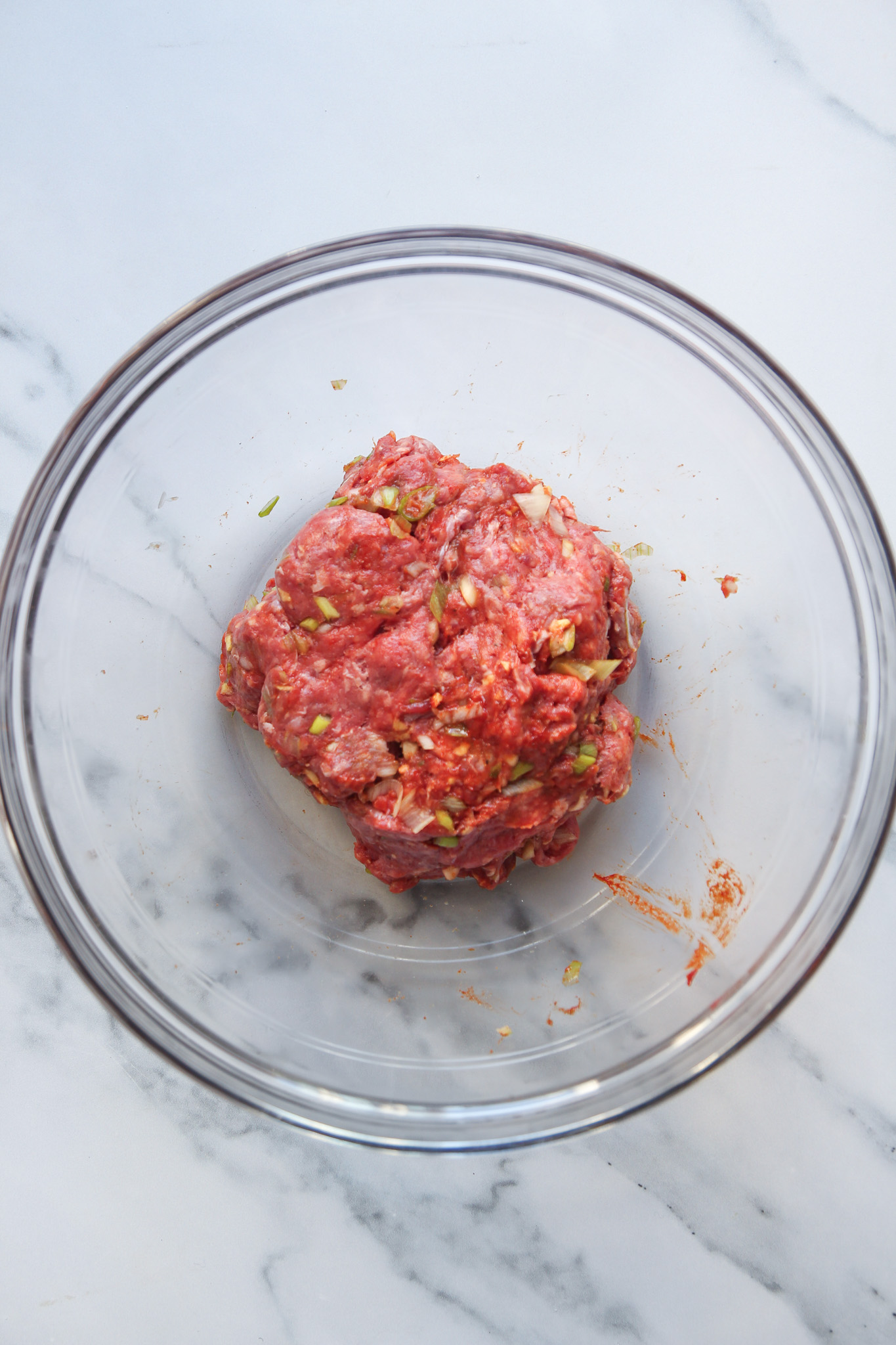 Add all the meatball ingredients to a large mixing bowl. Using clean hands, incorporate the ingredients into each other until evenly distributed.