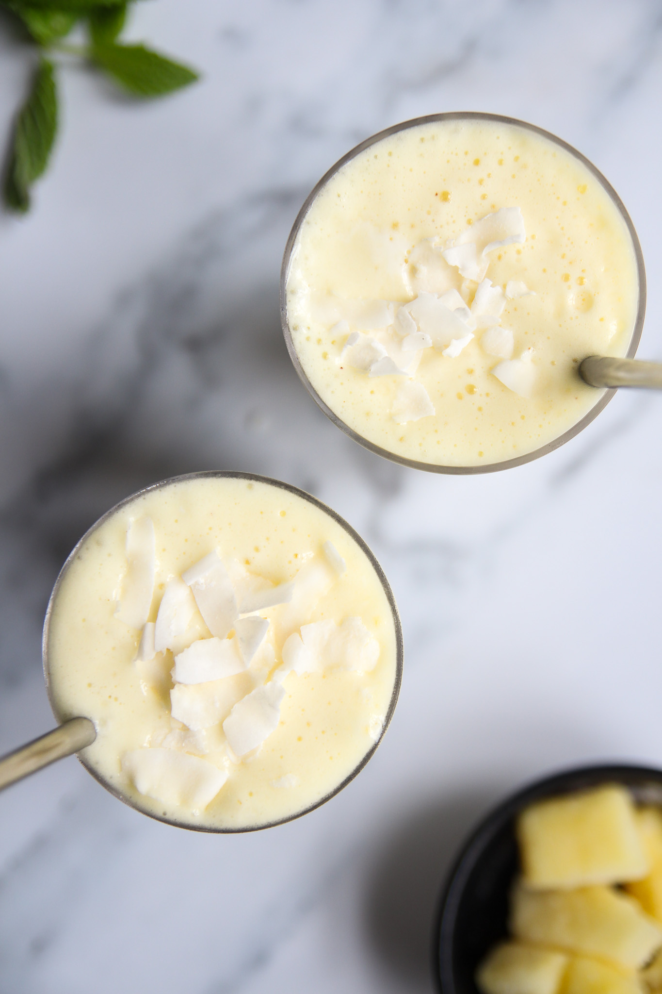 I can’t take credit for this combo—it’s the brainchild of my friend, Kaitie. That being said, this Piña Colada Protein Smoothie is so delicious, and I’ve been making it so often that I figured it deserved a permanent place on the blog. As some of you may know, I recently ran my first half marathon, so making sure to properly fuel my body after long runs has been top of mind. This smoothie is easy to make, contains naturally occurring electrolytes, and gets in a sneaky serving of protein, all while tasting delicious.