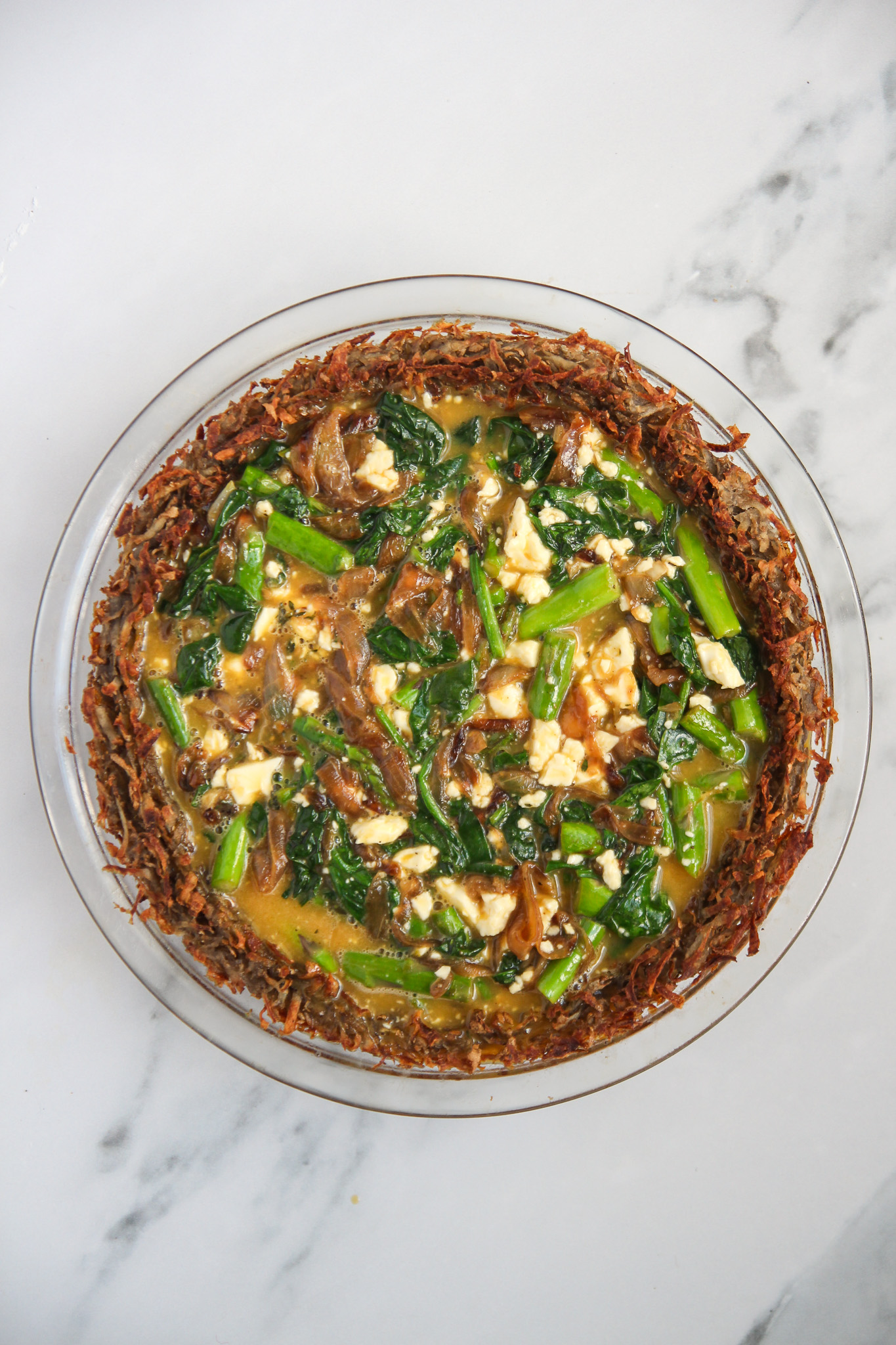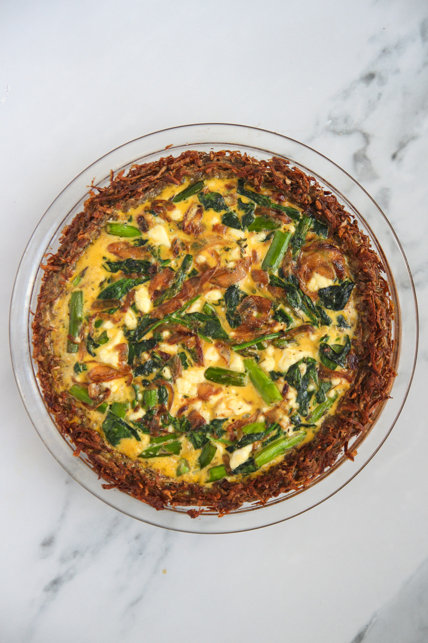 Potato Crust Quiche with Spinach and Asparagus