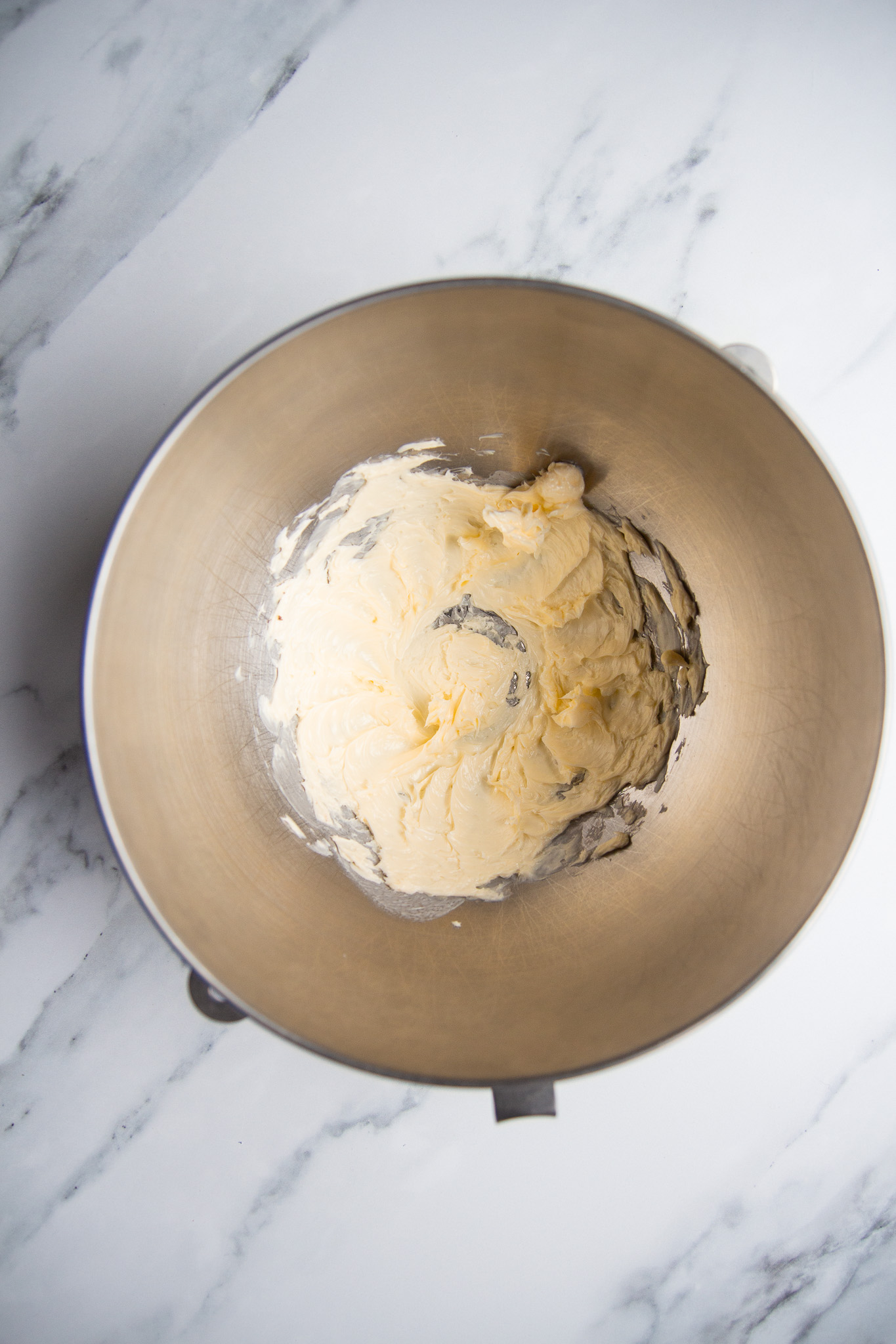 In the bowl of an electric stand mixer, beat the softened butter using the paddle attachment until it is light and fluffy. This will take about one minute. Alternatively, the butter can be creamed by hand using a sturdy baking spatula.
