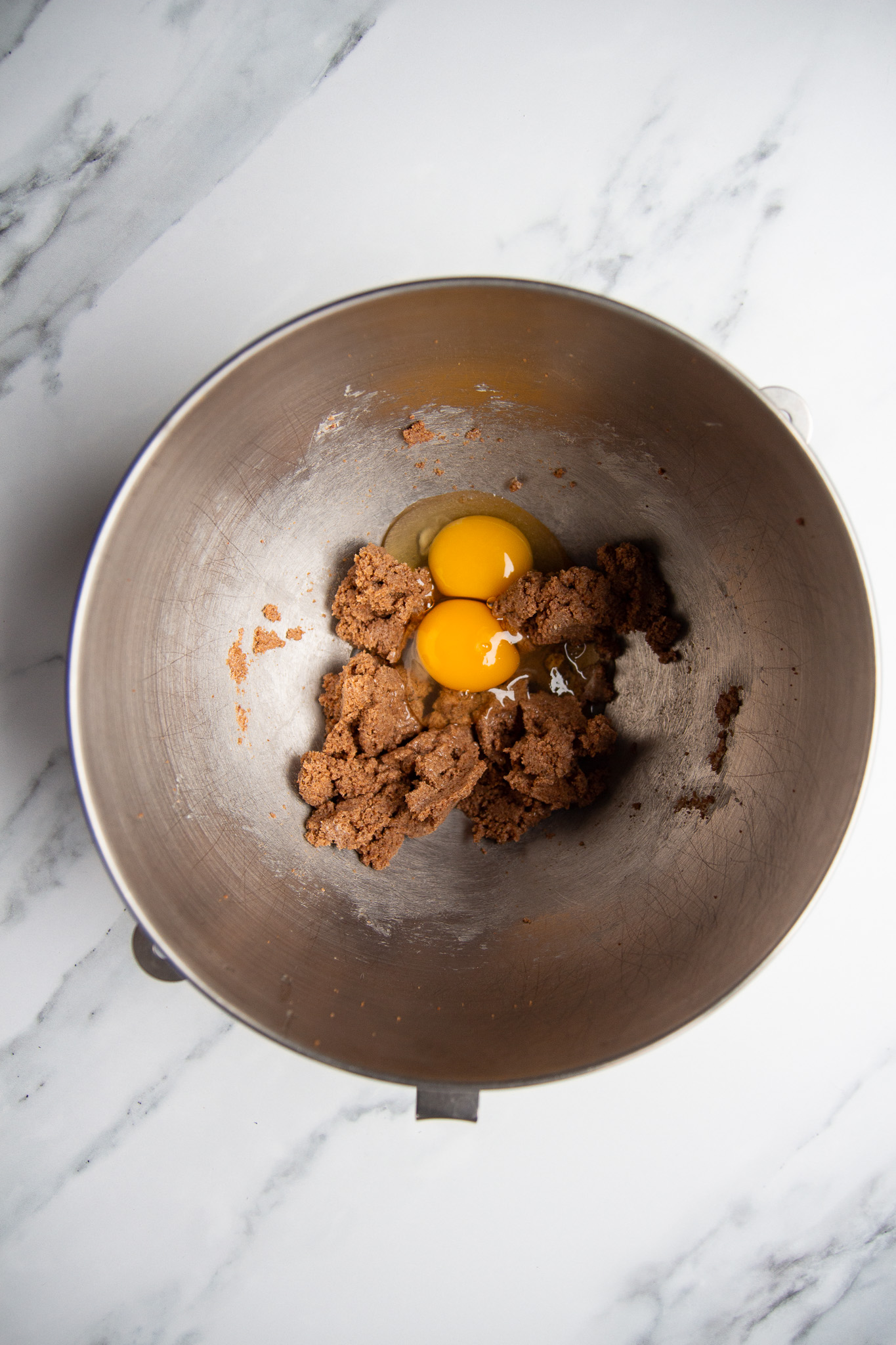 - Add the softened butter to the bowl of an electric mixer. Using the paddle attachment, cream the butter until smooth. This will take about one minute. Add the coconut sugar and beat until combined. Add in the eggs and beat one final time until smooth.