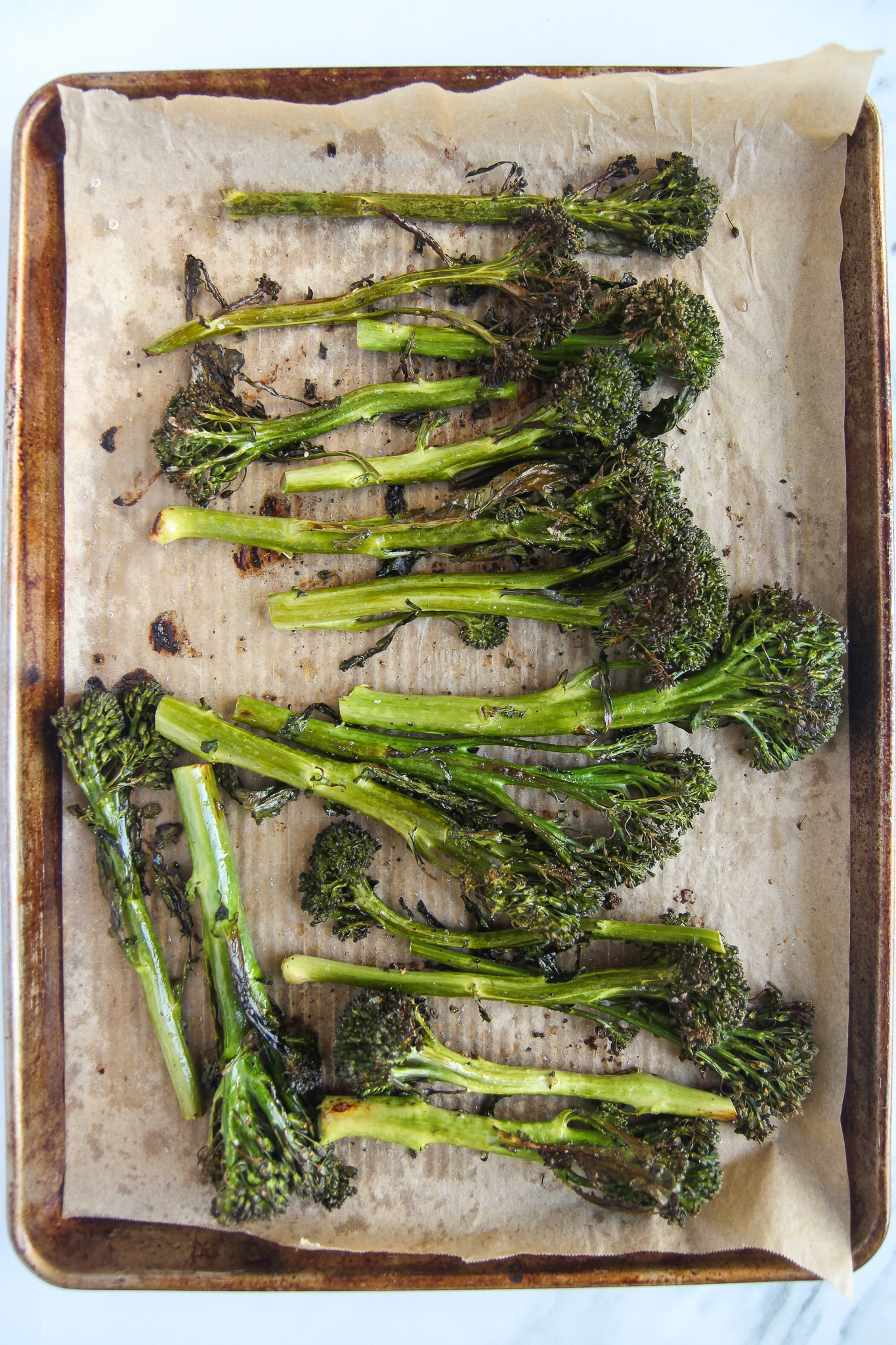 - Preheat the oven to 425℉ and line a large baking sheet with parchment paper. Rinse the broccolini with water and pat it dry with a clean towel. Transfer to the prepared baking sheet. Toss with olive oil, sea salt, and fresh black pepper.