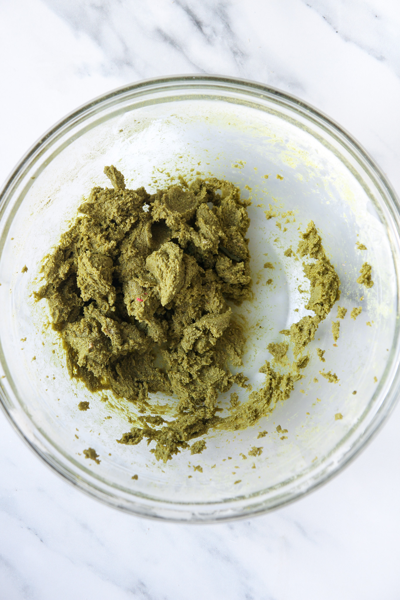 - Transfer a second portion of dough to the mixer's bowl; don't worry about washing the bowl before. Add the matcha powder and 1 teaspoon of water to the mixer, then beat on medium until flly combined.