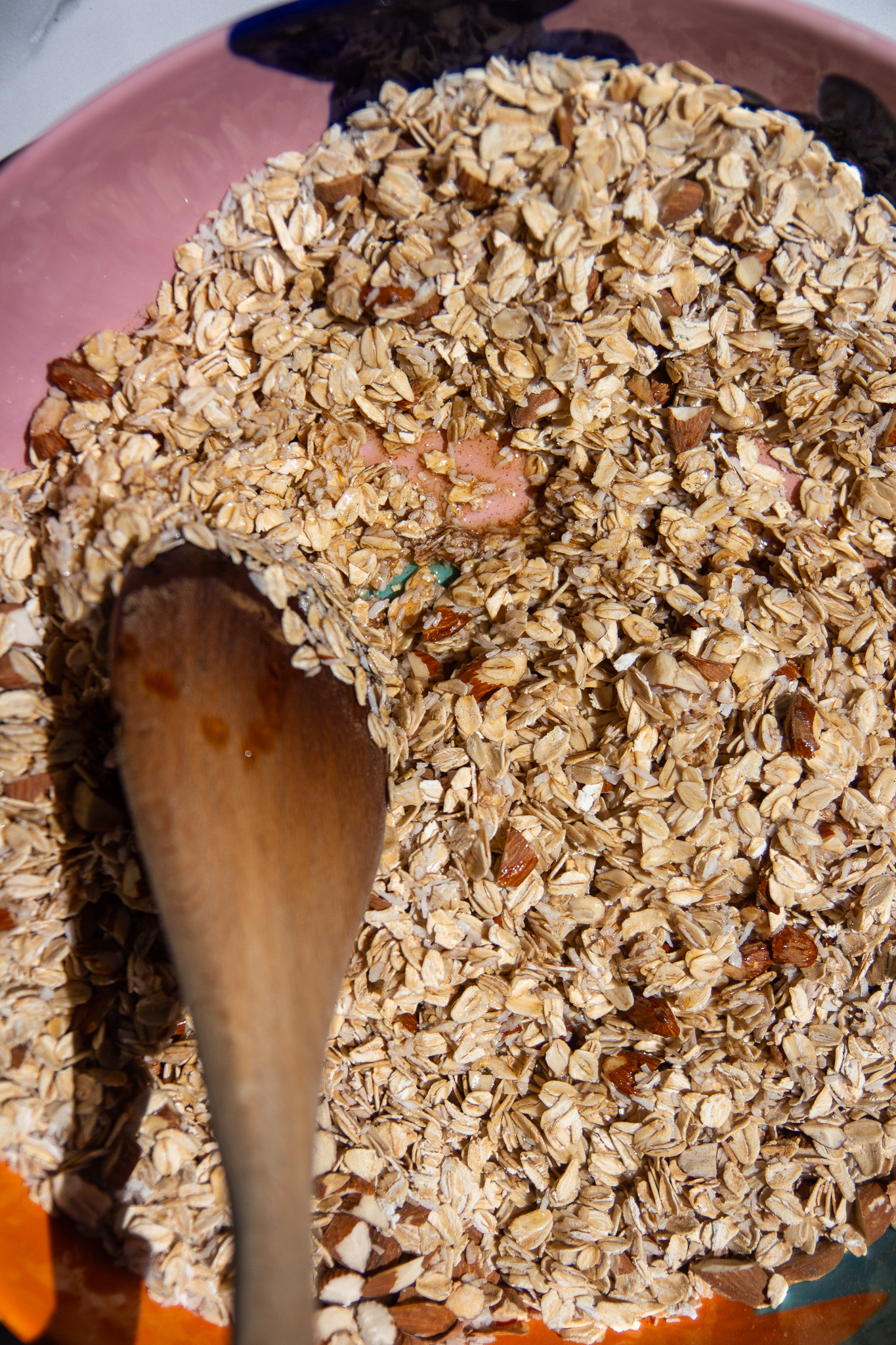 I make my granola using gluten free rolled oats, but regular rolled oats will work just fine here if you have no issues with gluten.