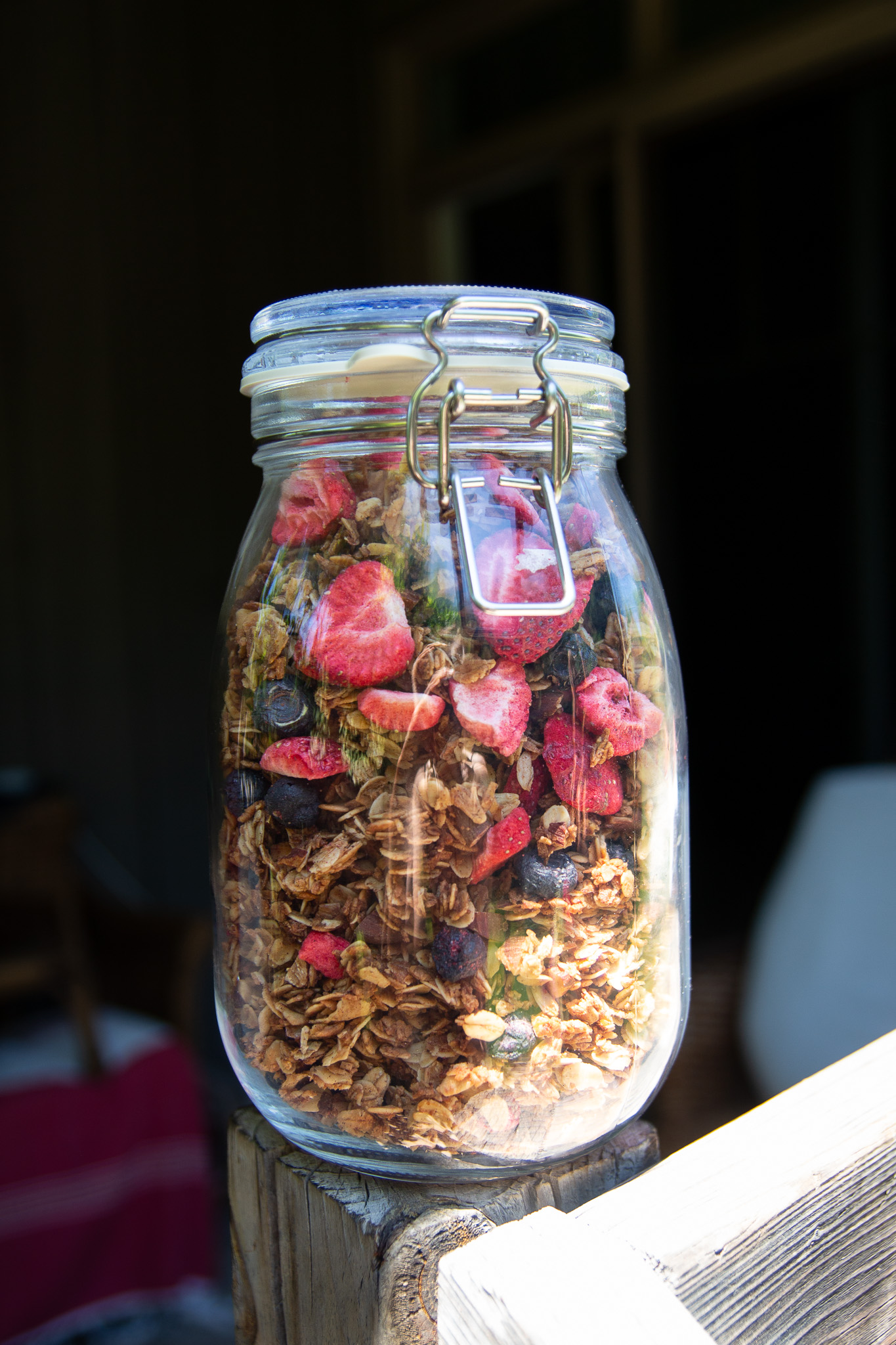 Store the Summer Berry Granola in an airtight container or jar to enjoy for up to two weeks.
